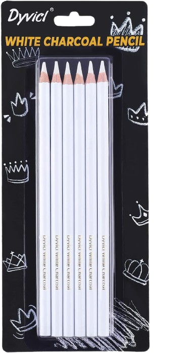 Dyvicl White Charcoal Pencils Drawing Set, 6 Pcs Sketch Highlight Pencil Hard Charcoal White Pencils for Drawing, Sketching, Shading, Blending