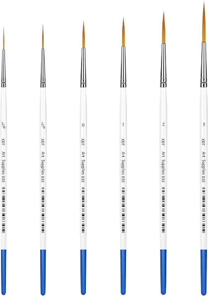 XDT#830 Rigger Artist Paint Brush 6 Piece Set Extra Long Fine Point Liner Tip #000#00#0#1#2#3, Scale Models Nail Acrylic Oil Watercolor