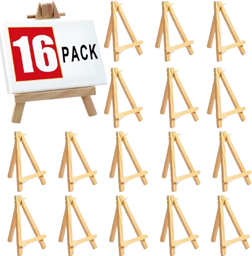 16 Pcs 6 Inch Natural Wooden Mini Easel Stand Artist Easel Wood Artist Triangle Cards Stand Tripod Small Easels for Display Tabletop Canvas Stand for Painting Arts Crafts Easels for Display Card Photo
