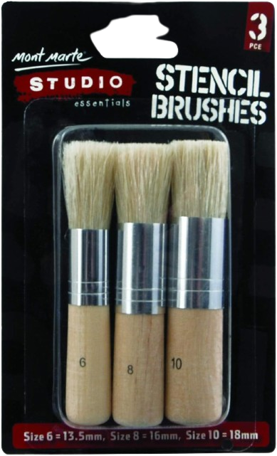 Mont Marte Studio Essentials-Stencil Brushes Set 3 PK. Size 6,8,10