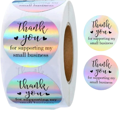 500 Pieces 1.5'' Thank You for Supporting My Small Business Stickers Roll Stickers Adhesive Holographic Stickers Rainbow Stickers for Business Online Retailers Boutiques Shops