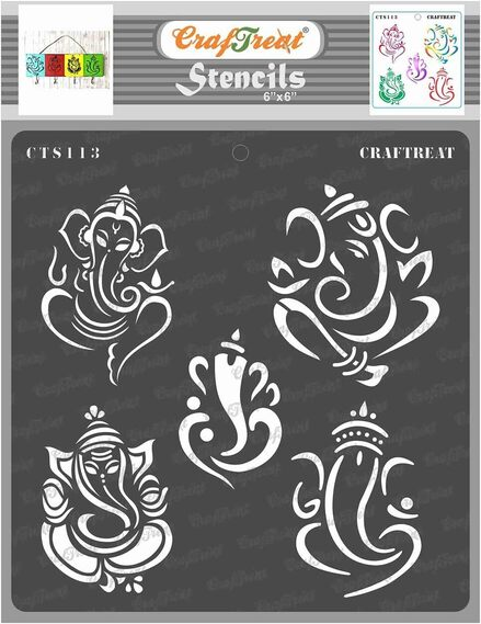 CrafTreat Ganesha Stencil for Painting on Wood, Home Decor and Wall Art - Ganesha Stencil - 6X6 Inches - Ganesh Stencils for Painting on Tiles & Scrapbook Supplies - Indian God Art & Craft Supplies