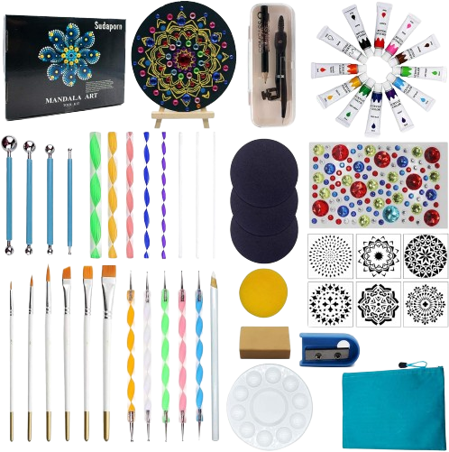 56 PCS Mandala Dotting Tools Painting Kit with Acrylic Paint Include Rock Dot Paint Stencils Compass Brush Zipper Waterproof Bag for Nail Stone Mandala Arts Drawing