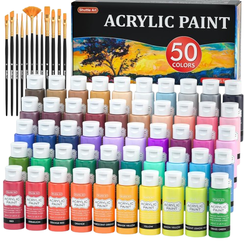 Shuttle Art 50 Colours Acrylic Paint Set, 2oz/60ml Bottles, Rich Pigmented, Water Proof, Premium Acrylic Paints for Artists, Beginners and Kids on Canvas Rocks Wood Ceramic Fabric