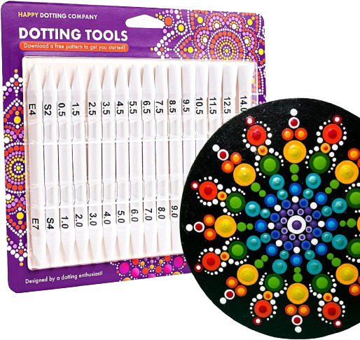 Dotting Tools for Painting Mandalas - Happy Dotting Company - 16pc Double Ended Super Set for Mandala dot Art - Includes Stylus - Unique Ellipse Tool - for Painting Rocks DIY Stone Craft and Canvas